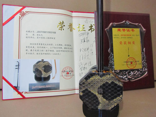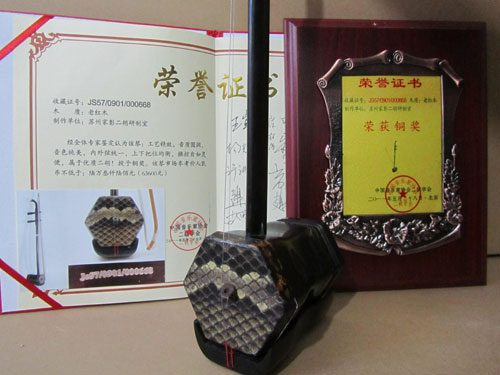 二胡制作大師丁家彭先生1949年出生樂(lè)器世家,17歲隨其祖父學(xué)琴藝,并深得精髓,其聰穎好學(xué),悉心鉆研與 探求二胡制作,博得同行的欽佩贊許,更得了許多知名演奏家的稱(chēng)贊,充分認(rèn)識(shí)到二胡制作每個(gè)環(huán)節(jié),都對(duì)二胡制作都有影響力,因此對(duì)二胡的選材,選料,蟒皮都十分嚴(yán)格,二胡整體穩(wěn)定性良好,環(huán)境干擾影響極小。